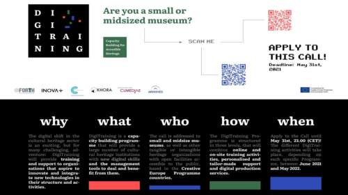 Την ευκαιρία να αποκτήσουν τις απαιτούμενες ψηφιακές δεξιότητες, καθώς και να αξιοποιήσουν τα πλέον σύγχρονα ψηφιακά εργαλεία για την ανάδειξη των εκθεμάτων που φιλοξενούν, προσφέρει το Ινστιτούτο Πληροφορικής του Ιδρύματος Τεχνολογίας και Έρευνας (ΙΤΕ), σε μουσεία και οργανισμούς με αντικείμενο τη διαχείριση και διαφύλαξη έργων πολιτιστικής κληρονομιάς. Ανοιχτή πρόσκληση απευθύνει το ΙΤΕ στους αρμόδιους φορείς να συμμετάσχουν σε πρόγραμμα κατάρτισης,…