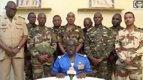 Η ηγεσία του στρατού συντάσσεται με τους πραξικοπηματίες Δέκα πραξικοπηματίες αξιωματικοί των ενόπλων δυνάμεων και των σωμάτων ασφαλείας του Νίγηρα, χώρας της Αφρικής που αιματοκυλίζουν οργανώσεις τζιχαντιστών, ως τώρα συμμάχου-κλειδιού της Δύσης στο Σαχέλ, ανακοίνωσαν τη νύχτα της Τετάρτης προς Πέμπτη μέσω της κρατικής τηλεόρασης πως ανέτρεψαν τον δημοκρατικό εκλεγμένο πρόεδρο Μοαμέντ Μπαζούμ, πόυ βρίσκεται στην εξουσία από το 2021.…