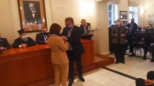 Το έμβλημα – αναμνηστικό μετάλλιο που απεικονίζει τον Ελευθέριο Βενιζέλο, απένειμε ο Περιφερειάρχης Κρήτης Σταύρος Αρναουτάκης στην Πρόεδρο της Ελληνικής Δημοκρατίας Κατερίνα Σακελλαροπούλου στην διάρκεια αναγόρευσής της ως Επιτίμου Προέδρου και Εταίρου του Εθνικού Ιδρύματος Ερευνών Μελετών “Ελευθέριος Βενιζέλος” στα Χανιά. Δείτε: Στα Χανιά η Πρόεδρος της Δημοκρατίας- Αναγορεύτηκε επίτιμη πρόεδρος του Ιδρύματος “Βενιζέλος” (φωτο-βίντεο) Η απονομή του εμβλήματος στην Πρόεδρο από τον Περιφερειάρχη Κρήτης έγινε και με την παράλληλη ιδιότητα του ως…