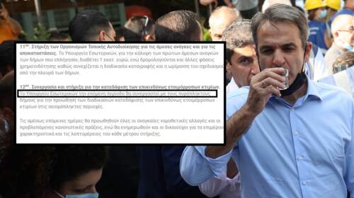 Το συνειδητοποιήσατε ότι χθες ο πρωθυπουργός και η κυβέρνησή του ανακοίνωσαν μέτρα στήριξης των… πυρόπληκτων του νομού Ηρακλείου; Προσοχή, όχι των σεισμόπληκτων, αλλά των… πυρόπληκτων! Δείτε: Ο Μητσοτάκης ανακοίνωσε απαλλαγή από τον ΕΝΦΙΑ για τους σεισμόπληκτους που… δεν έχουν σπίτια! Στην επίσημη ανακοίνωση της κυβέρνησης γίνεται αναφορά στους… “πυρόπληκτους δήμους”, αποδεικνύοντας ότι οι ανακοινώσεις των “μέτρων” ήταν δουλειές του ποδαριού…