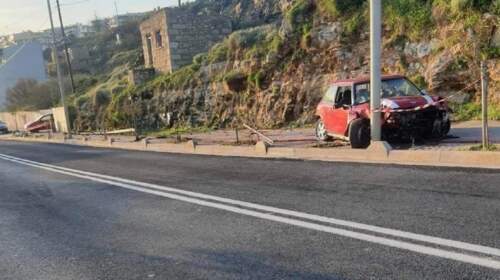 Κρήτη: “Τρελή” πορεία αυτοκινήτου- Έπεσε σε δυο άλλα ΙΧ και σε στύλο (φωτο)