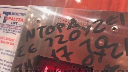 Άγνωστοι βανδάλισαν το ασανσέρ που οδηγεί στο γραφείο της Ντόρας Μπακογιάννη, στο κτίριο που επίσης στεγάζεται η ΝΟΔΕ Χανίων της Νέας Δημοκρατίας στο κέντρο της πόλης. «Ντόρα, το ’89 έγινε μισή δουλειά» και «Ντόρα σε τσούζει της 17 το ούζι», έγραψαν άγνωστοι στον καθρέφτη και στο πάνελ του ανελκυστήρα, με το σήμα των αναρχικών και ευθεία παραπομπή στην δολοφονία του…