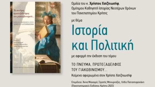 Μια βραδιά υψηλού επιστημονικού και κοινωνικο-πολιτικού λόγου θα έχουν την ευκαιρία να απολαύσουν οι πολίτες του Ηρακλείου και της Κρήτης, σήμερα, Τετάρτη 19 Ιουνίου και ώρα 8μ.μ. στην Αίθουσα «Καστελλάκη» του Επιμελητηρίου Ηρακλείου (οδός Κορωναίου 9). Θα μιλήσει ο Ομότιμος Καθηγητής Ιστορίας Νεοτέρων Χρόνων του Πανεπιστημίου Κρήτης Χρήστος Χατζηιωσήφ, με θέμα: «Ιστορία και Πολιτική», με παραδείγματα από τον Ευρωπαϊκό Διαφωτισμό…