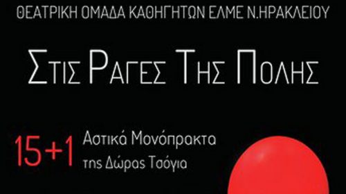 Η Θεατρική Ομάδα Καθηγητών ΕΛΜΕ Ν. Ηρακλείου, με τη στήριξη της Περιφέρειας Κρήτης, στο πλαίσιο των δραστηριοτήτων της παρουσιάζει τη θεατρική παράσταση: Στις ράγες της πόλης «15+1 Αστικά Μονόπρακτα» της Δώρας Τσόγια Η παράσταση βασίζεται στο θεατρικό κείμενο «20 Αστικά Μονόπρακτα» της Δώρας Τσόγια, εκδόσεις Άγρα (2016). Πρόκειται για ένα σπονδυλωτό θεατρικό έργο που αποτελείται από 16 μονόπρακτα που διαχειρίζονται…