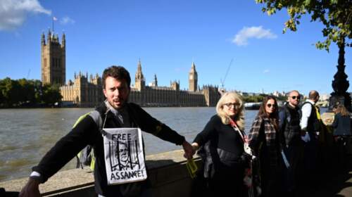 «Ελευθερώστε τον Ασάνζ» και «Η δημοσιογραφία δεν είναι έγκλημα», έγραφαν τα πανό που κρατούσαν οι διαδηλωτές Υποστηρικτές του ιδρυτή του WikiLeaks Τζούλιαν Ασάνζ σχημάτισαν μια ανθρώπινη αλυσίδα έξω από το κοινοβούλιο της Βρετανίας, ζητώντας να σταματήσει η προσπάθεια των Ηνωμένων Πολιτειών για την έκδοσή του, προκειμένου να δικαστεί για ποινικά αδικήματα από τα αμερικανικά δικαστήρια. Εκατοντάδες διαδηλωτές, μεταξύ των οποίων…